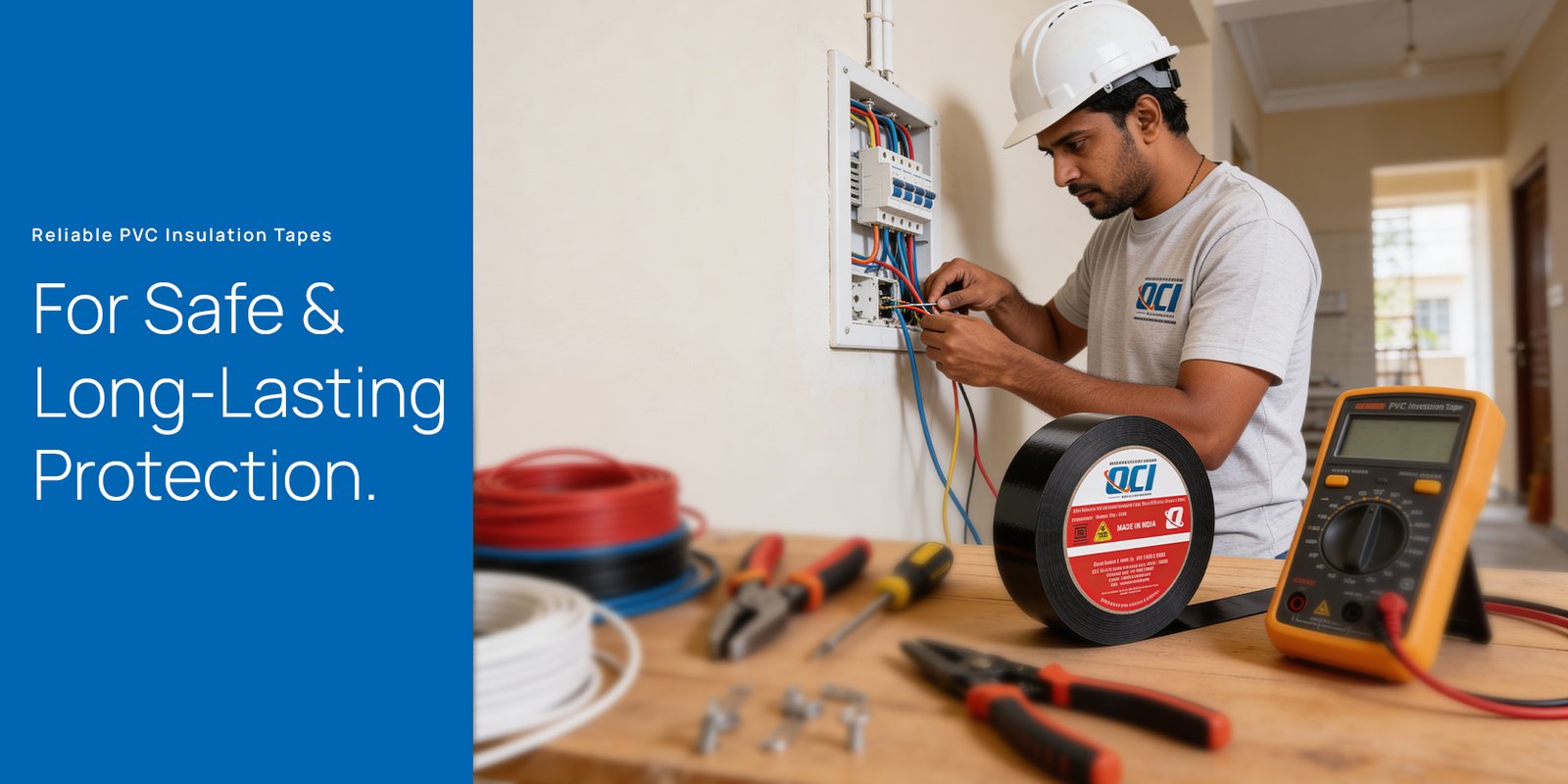 OCI PVC Electrical Insulation Tape is made from high-quality PVC film with adhesive backing to ensure effective electrical insulation and protection. Developed for commercial as well as residential applications, it ensures secure winding, strong adhesive hold, and safe insulation of electrical connections.
